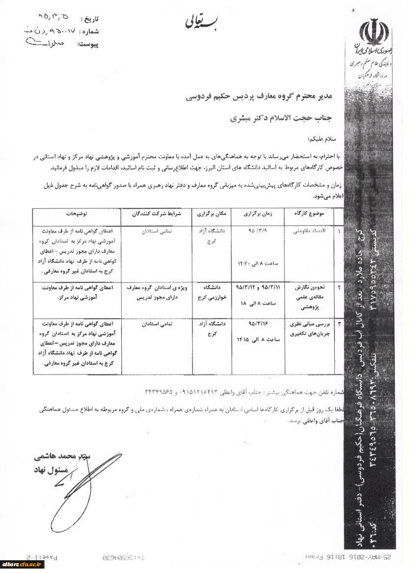 امتیاز دهید : اطلاعیه برگزاری کارگاه های مربوط به اساتید دانشگاه های استان البرز 2 دوشنبه 10 خرداد 1395 ساعت 12:38