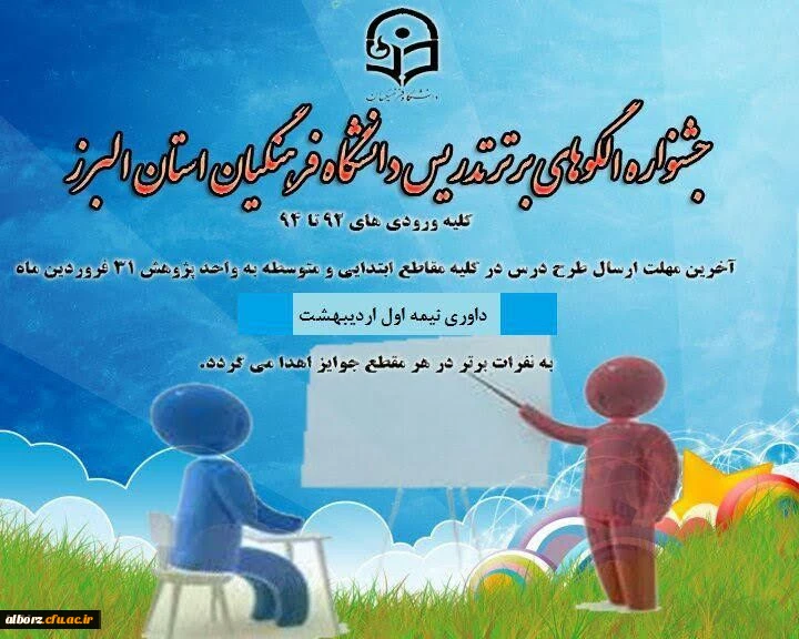 اطلاعیه جشنواره الگوهای برتر تدریس برگزاری اولین جشنواره استانی الگوهای برتر تدریس با رویکرد درس پژوهی 2