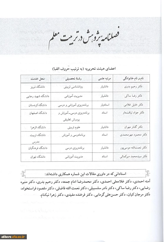 اولیـن شماره فصلنامه پـژوهش در تربیت معلم منتشر شد. 3