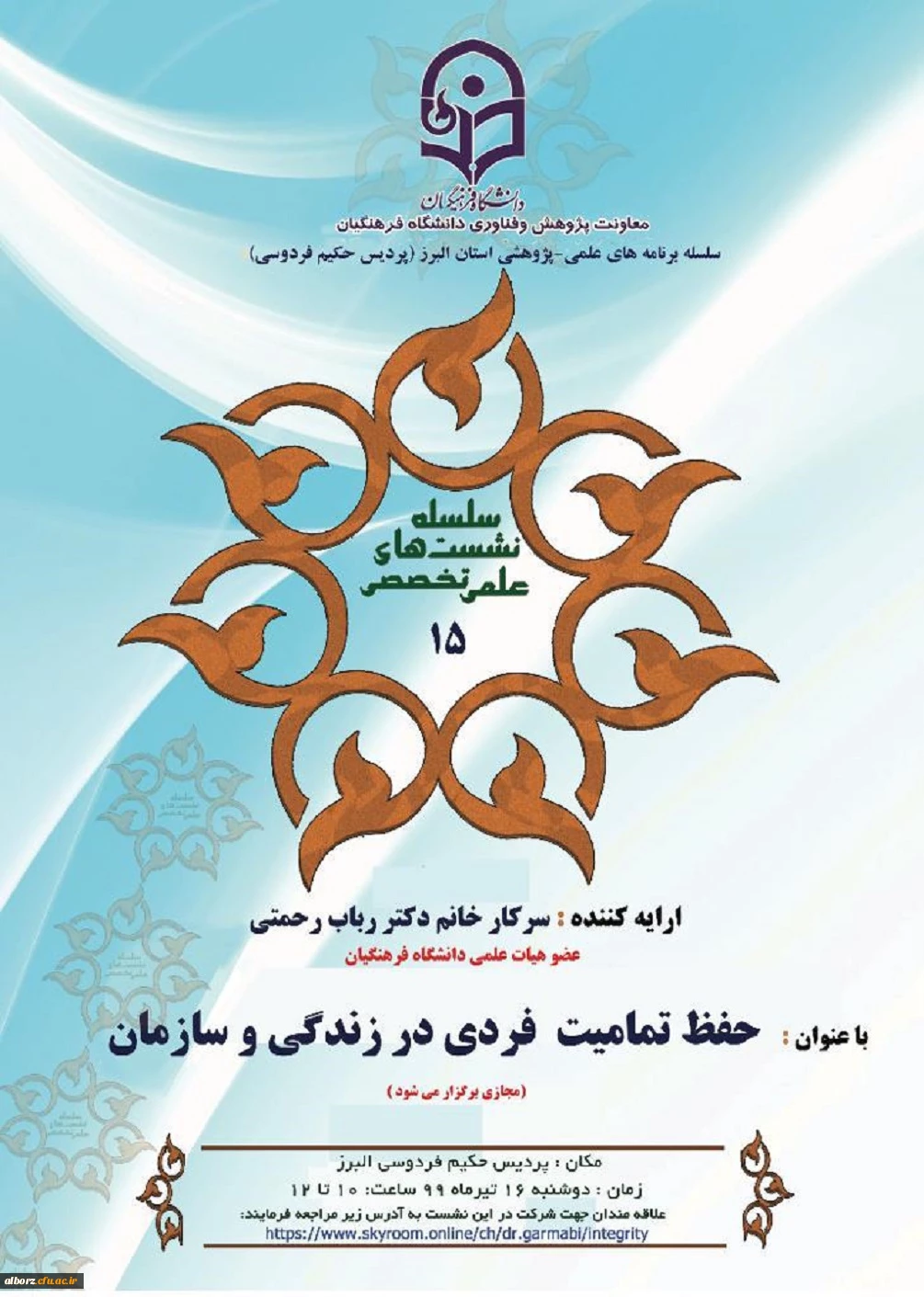 امتیاز دهید : برگزاری سلسله نشست های علمی تخصصی حفظ تمامیت فردی در زندگی و سازمان 2 یکشنبه 15 تیر 1399 ساعت 15:31