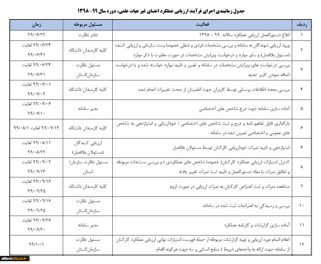 ابلاغ بخشنامه ارزیابی عملکرد سالانه اعضای غیر هیأت علمی دانشگاه فرهنگیان 2