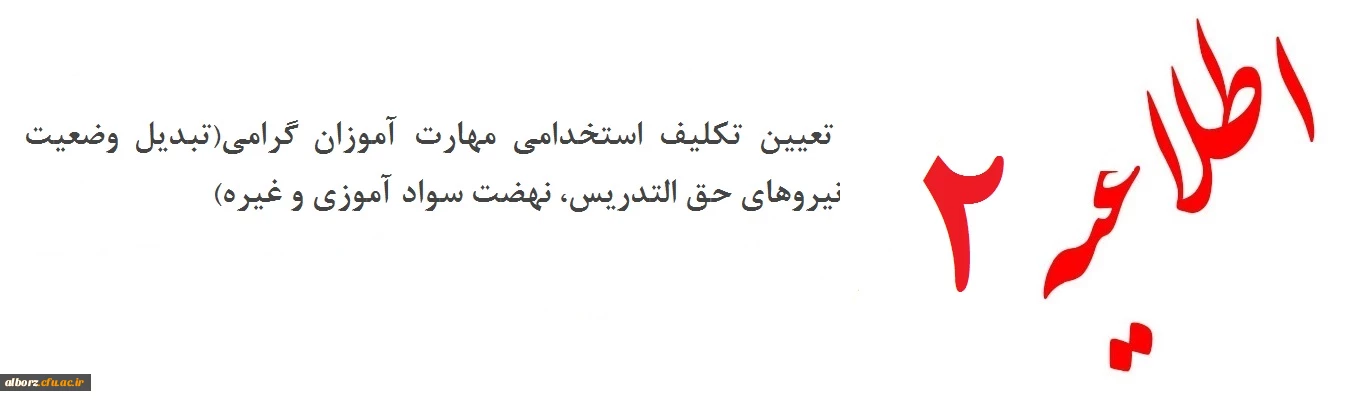 اطلاعیه شماره ۲ سری دوم تعیین تکلیف استخدامی مهارت آموزان گرامی(تبدیل وضعیت نیروهای حق التدریس، نهضت سواد آموزی و غیره ) 2