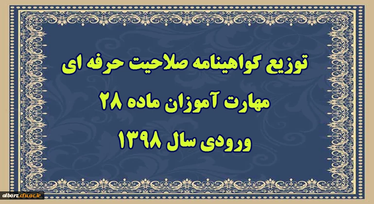 توزیع گواهینامه صلاحیت حرفه ای مهارت آموزان ماده 28 ورودی سال 1398 از 23 شهریور 2