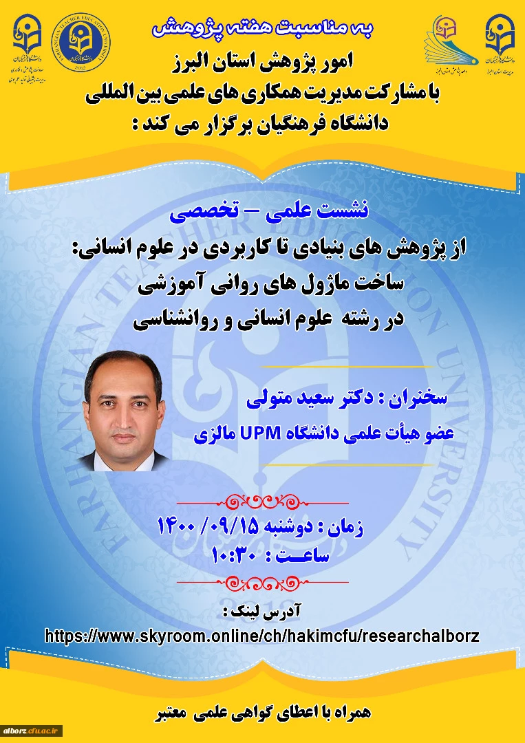 " از پژوهش های بنیادی تا کاربردی در علوم انسانی ساخت ماژول های روانی آموزشی در رشته علوم انسانی و روانشناسی " 6