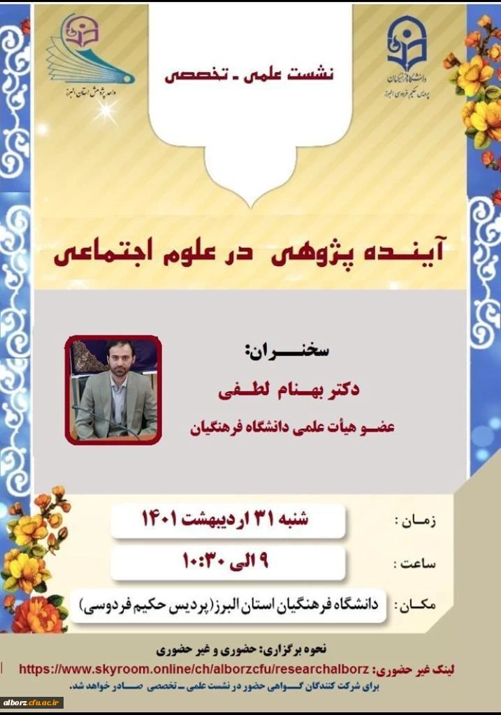 امتیاز دهید : برگزاری نشست علمی ـ تخصصی " آینـده پژوهی در علوم اجتماعی" 2 یکشنبه 25 اردیبهشت 1401 ساعت 15:01
