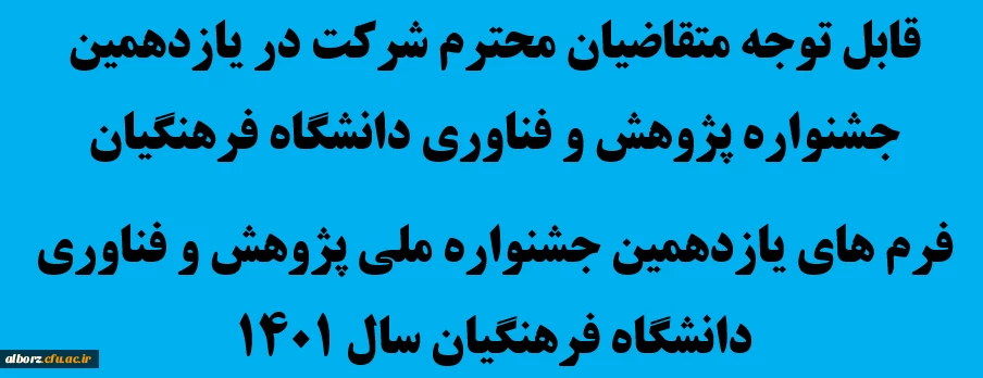 قابل توجه متقاضیان محترم شرکت در یازدهمین جشنواره پژوهش و فناوری دانشگاه فرهنگیان 3