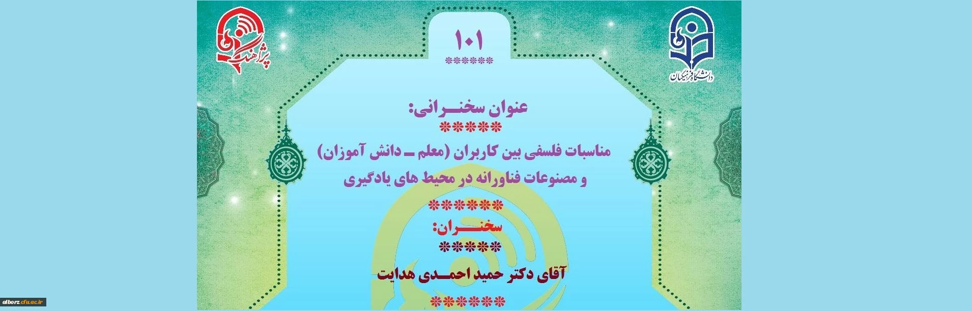 برگزاری پژآهنگ با سخنرانی آقای دکتر حمید احمدی هدایت عضو هیأت علمی دانشگاه فرهنگیان برگزار خواهد شد. 2