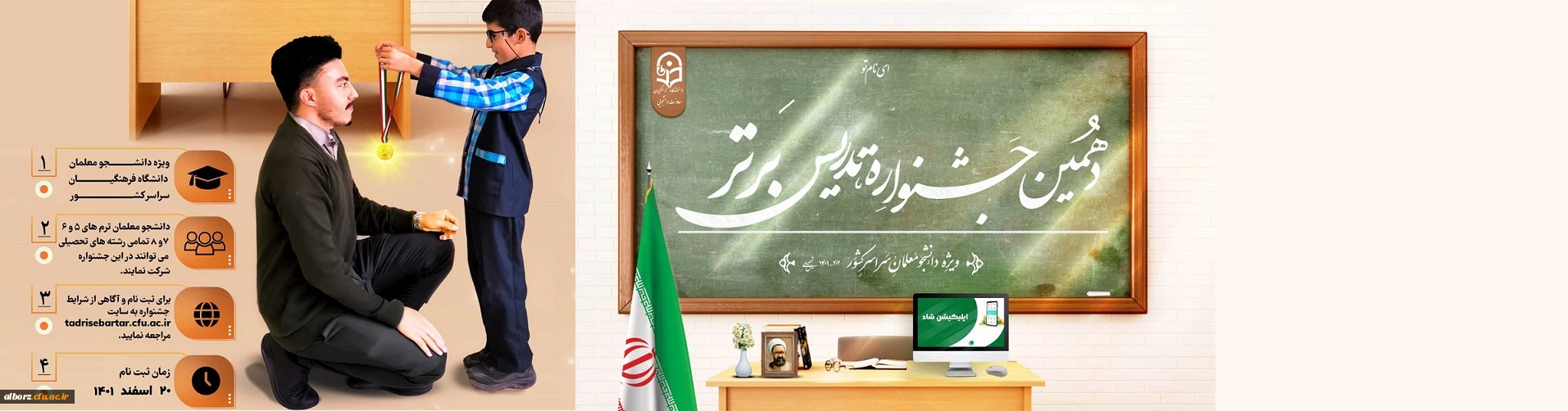 امتیاز دهید : دهمین جشنواره تدریس برتر ویژه دانشجومعلمان دانشگاه فرهنگیان . 4 یکشنبه 14 اسفند 1401 ساعت 7:20