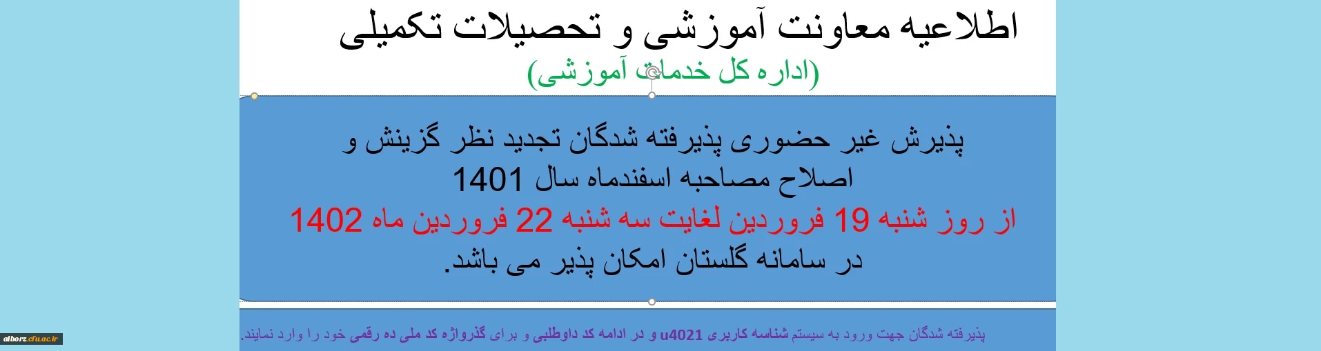 امتیاز دهید : اطلاعیه معاونت آموزشی و تحصیلات تکمیلی (اداره کل خدمات آموزشی) 2 یکشنبه 20 فروردین 1402 ساعت 10:01