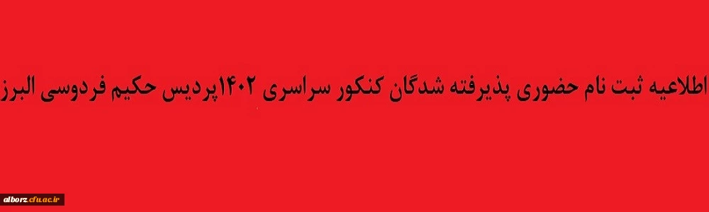 اطلاعیه ثبت نام حضوری پذیرفته شدگان کنکور سراسری 1402 پردیس حکیم فردوسی البرز 2
