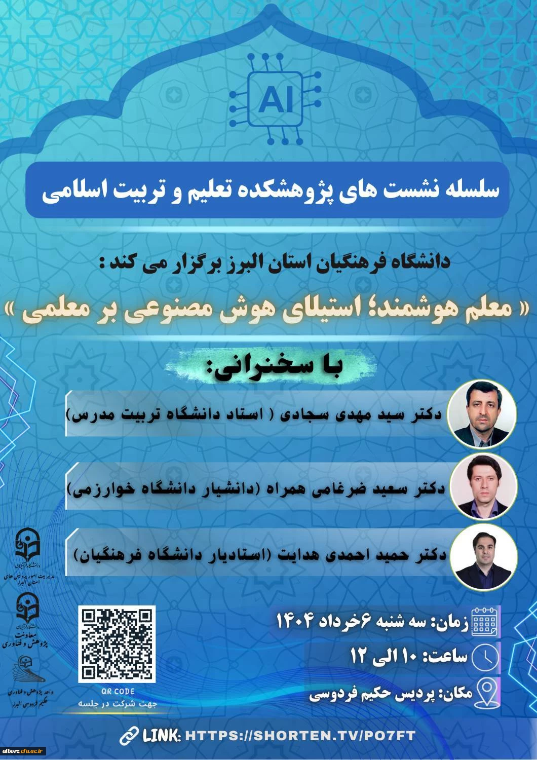 امتیاز دهید : نشست علمی با موضوع: «معلم هوشمند؛ استیلای هوش مصنوعی بر معلمی» 2 یکشنبه 4 خرداد 1404 ساعت 7:47